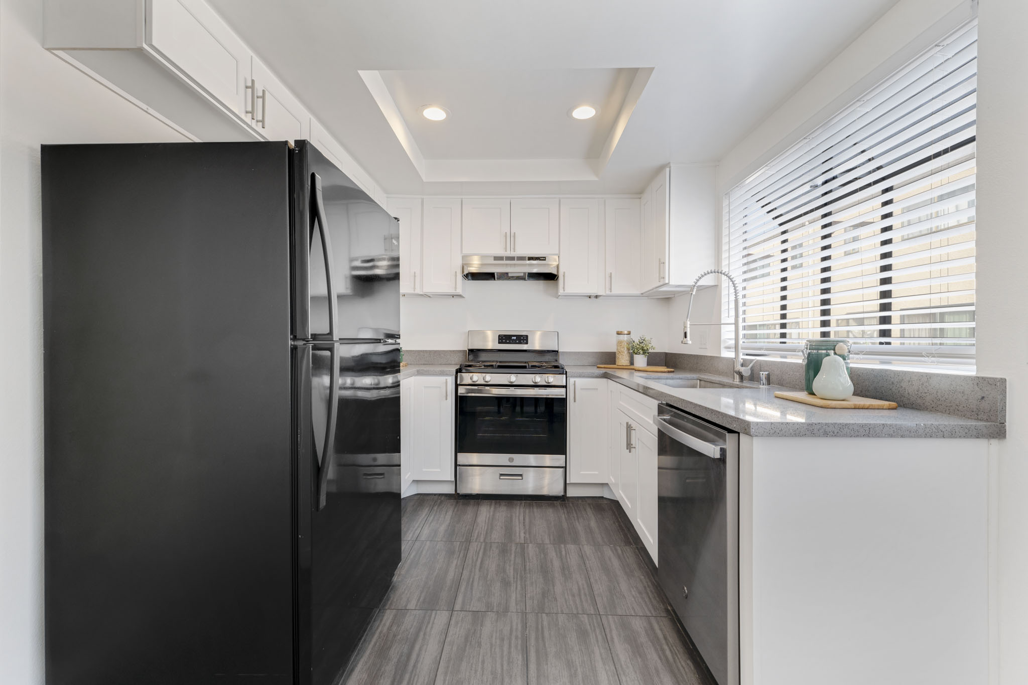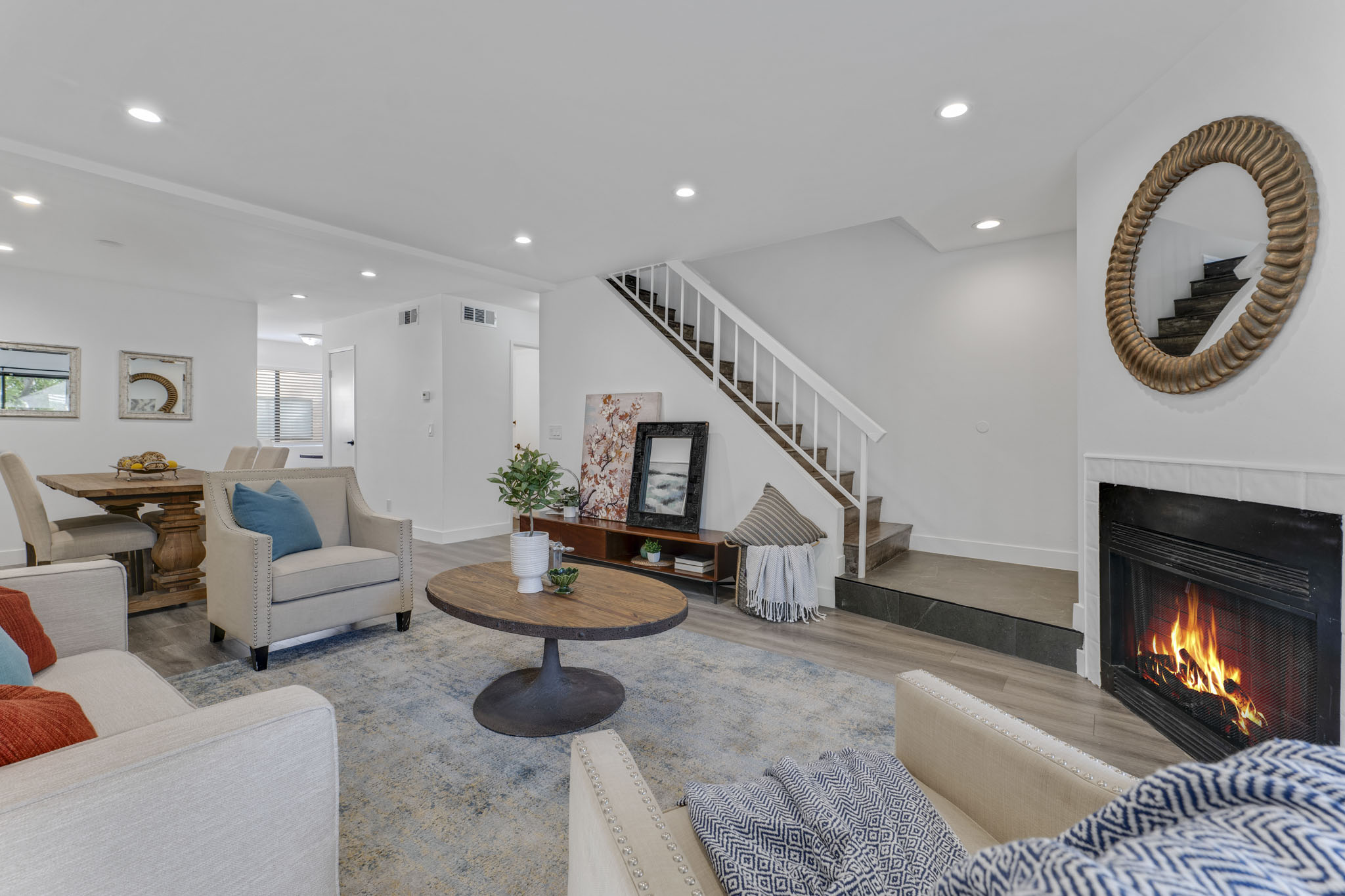 SOLD FOR THE HIGHEST PRICE EVER IN THIS COMPLEX. Totally redone tri-level townhome in a prime North Hills 18-unit, gated complex. Charming 2 bedrooms and 3 baths with a comfortable 1,134 interior square feet. Recently upgraded with beautiful finishes! Newer white shaker cabinetry with quartz counter tops, stainless steel appliances, a large pantry, and a convenient breakfast nook. Newer interior paint throughout, newer HVAC package unit, newer laminate floors, newer recess lights, newer water heater, and much more. HUGE, light and bright living room with fireplace, formal dining room, and a patio with a pool view ideal for entertaining. Third level has both bedrooms that are on suites with bath. The larger primary suite has high ceilings, recess lights, a balcony, and multiple closets. Primary bath has a newer vanity with mirror light that leads to the custom tile shower. Second on suite bedroom has a newer closet door with an updated bath. You have direct access to the two car tandem garage with side by side washer/dryer hook ups and plenty of space for storage. Inside the complex is a community pool for the hot summer, and a jacuzzi/spa for the cold winter. Great location close to all shopping, restaurants, 405 fwy and much more.